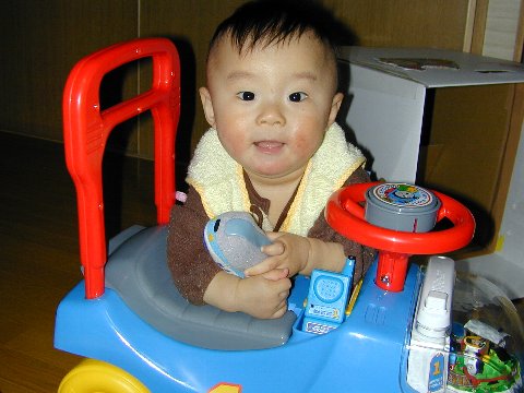 | 2002. 4.12 | 今日は、おばあちゃんが来た。けど、お母さんはお出かけしなかった。 お昼ごはんを一緒に食べた。 おばあちゃんが帰ったあと、お外で遊んだ。ゆうすけ兄ちゃんが、アンパンマンの車を貸してくれたから、手でおしたり、乗ったりして遊んだ。お兄ちゃんは走ったり、三輪車に乗ったりしてかっこいい! ボクも早く走りたいな ・^_^・ (母:その前に歩こうな *^_^* ) 今日はお父さんの帰りが遅いんだって。ちぇつまんないな。 |