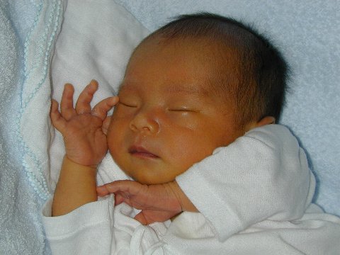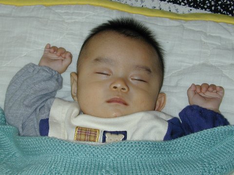 ちょっと寒くなってきた。 髪の毛もちょっと増えてきたでしょ。 でも、ねんねのときは、 やっぱりお手てを上にあげるの。 |