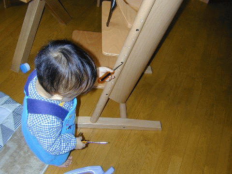 ボクは大工さん。椅子の修理もほらこのと〜り♪