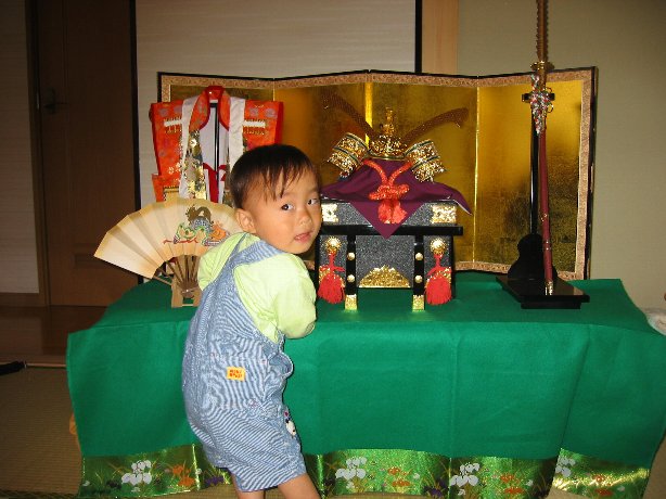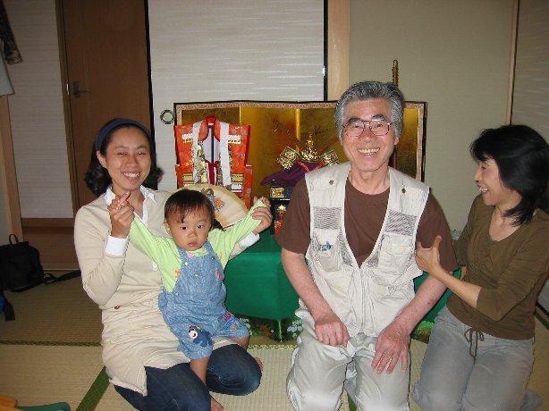 じじちゃん…そこにいたら、兜が写らない…