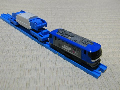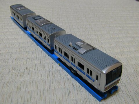 ももかちゃんちのある横須賀線を走る通勤型電車。 首都圏の通勤事情をダイレクトに反映した合理的な設計は、207系とは対極的な通勤型車両の典型である。 服部家からいただきました。 このプラレールは、2両目がパカッと開いて、中に3つ座席がある。 おじさんとお姉さんの人形もついていたが、現在お姉さん行方不明中。 |