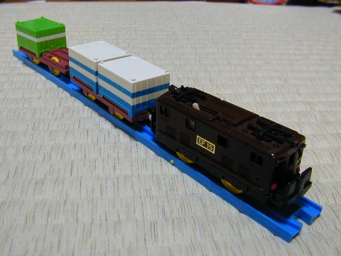 現代の標準型貨物機関車、エコパワー桃太郎。運んでいるのは変圧器と思われる。 池田家(りくくんち)からいただきました。 りくくんの方が、本物の電車好きだと思う。 きみぴよは、乗っていても、すぐに飽きるし、走っているのを見るのは、好きみたいだが、そんなに大興奮!って感じにはならない。 別に、テッチャンにならなくていいから、それでいいんだけど。 |