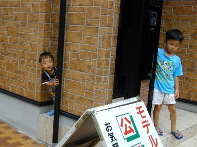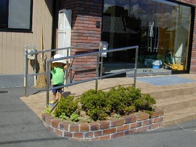 ここは午前中、ガレージが日陰になるので、よく遊べたけれど、 売れてしまったので、もう遊べない。 玄関は、いないいないばあ≠ェできて楽しい。 |
