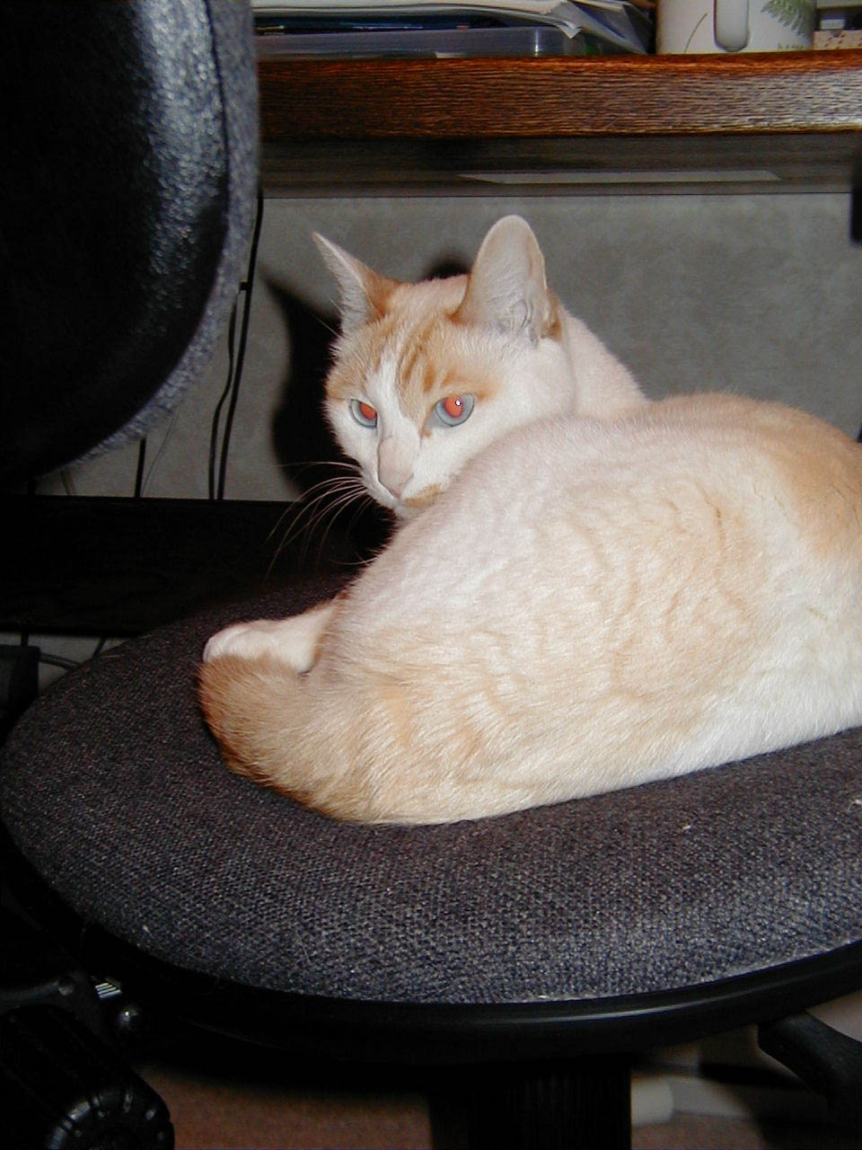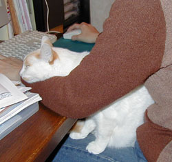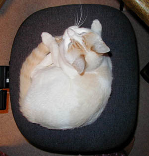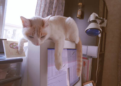 椅子の上もお気に入り(そこも、邪魔なんだけどなあ)