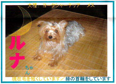どんな情報でも良いです。ルナちゃに関する情報がありましたら直接飼い主さんにメールで教えてあげて下さい。宜しくお願いいたします。m(_