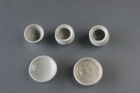 皿 直径4.1cm 壺 直径3.1cm 猪口 同3.1cm。