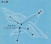 牽牛は、天の川をはさんでその対岸にありベガの南下方に白色に輝く1等星わし座のα星アルタイル(飛ぶワシ)です。