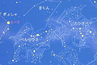 アンドロメダ姫を救った勇士として左手に女怪メドウサの首を持ち右手に大剣を振り上げた姿に見られているのがペルセウス座です。