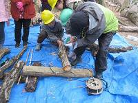 ■ 「シイタケ植菌体験イベント」で里山が大賑わい 当クラブは毎年シイタケの原木栽培に取組んでいますが、「植菌作業」を自然体験学習の一環として実施しています。今年は、「ならっぴクラブチーム西畑」(3月2日)、「いこま山のようちえん」(3月10日)の2団体が来訪。コナラの原木に電気ドリルで穴あけ作業、タタキ棒での菌の打ち込み作業を子供たちに体験していただきました。お土産に持ち帰り用のホダ木をご用意、上手に育てば来年春には収穫できます。 |