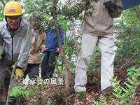 | ■ 里山(通称向山)にクヌギを植樹しました クラブが整備に取り組んでいる里山(向山)にクヌギを5本植樹をしました。豊かな森づくりを目指して数年前から始めた植樹活動の取組みです。クヌギは里山の代表的な樹木ですが向山には自生していません。あまり目の届かない自然環境の山林内です。元気に育ってくれることを願っております。 |
