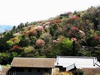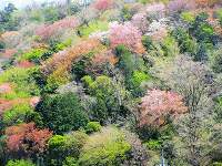 | ■ 里山の山桜(ヤマザクラ) 4月14日(日)、西畑町の里山(向山)の‘山桜’が今年もきれいに咲きました。山桜の淡いピンク色と新芽の赤や黄緑とのコントラスト、その美しさに思わず見とれました。こんな春のお山を“山が笑う”というのですね。当クラブが長年整備に取組んでいる里山、毎年景観がきれいになっているのではと感じています。 |