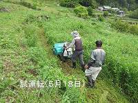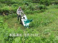 | ■ 「自走式草刈り機」が本格稼働しました 昨年末、地元自治会が導入した「自走式草刈り機」、当クラブも使用を開始しました。5月18日(日)に試運転と作業要領の確認、26日(月)に草刈り現場での本格運転を行いました。運転操作には習熟が必要で使用できるメンバーは限定されますが、「刈り払い機」による手刈り作業に比べて作業能率が倍以上であることが確認できました。自治会館前の収納庫から現場までの移動、作業後のメンテ作業などの新たな作業も必要となりますが、今年の草刈り作業の大きな戦力になりそうです。 |