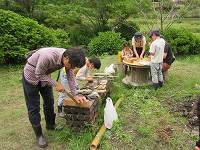 | ■今年のしめくくり「収穫祭」が行われました 12月15日(日)、今年の地元との皆さんとの共同活動のしめくくりとして「収穫祭」が行われました。午前中は共同の草刈り作業、お昼から「収穫祭」が行われ、おでん、豚汁 おにぎり、お餅、などなど・・・・地元の奥さん方の手づくりのお料理をいただきながら懇親を深めました。振り返ると日々の作業に追われてあっという間に過ぎた1年でした。 |