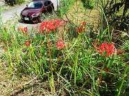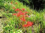 | ■ 秋の訪れ・・・‘彼岸花(ひがんばな)’ 暑さ寒さも彼岸まで・・・9月21日(日)の活動日、‘ひがんばな’が今年も咲き始めました。農道沿い、水車の周辺、お花畑の畦など、棚田のあちらこちらで咲く姿は秋の訪れを感じます。秋のお彼岸になると必ず咲いてくれる‘ひがんばな’不思議ですね・・・。‘ひがんばな’は“不吉な花”として嫌う人もいるようですが、燃えるような赤色が鮮やかで棚田を彩っています。 |
