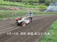 | ■ 菜の花畑の準備作業を行いました 10月から始まる2025年度の「ならっぴクラブ~チーム西畑~」の活動に備えて、猛暑の中、菜の花畑の準備作業が行われました。8月25日に草刈り・野焼き作業、8月31日に耕運(整地)作業、9月15日には施肥、耕運(畝立て)作業が行われました。今年度の用地は昨年度と同じ用地となりますので、連作障害を抑制するため土壌改良剤を多めに散布しました。 |