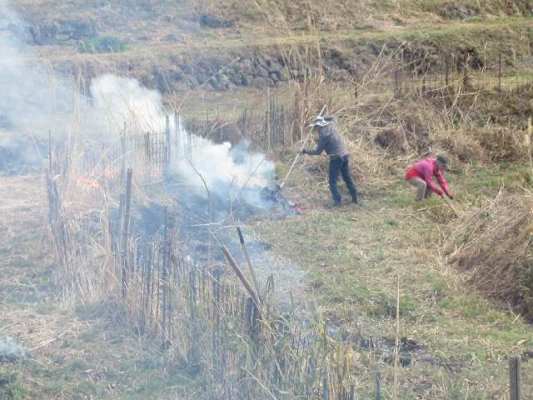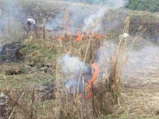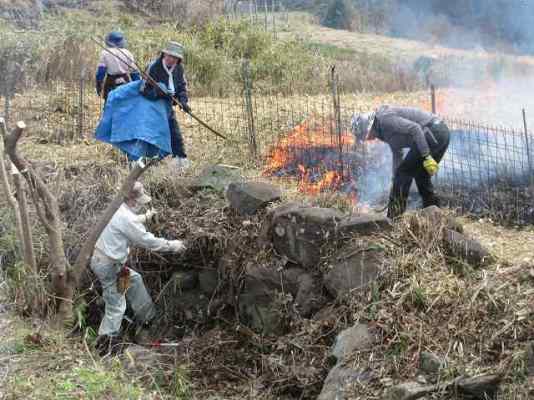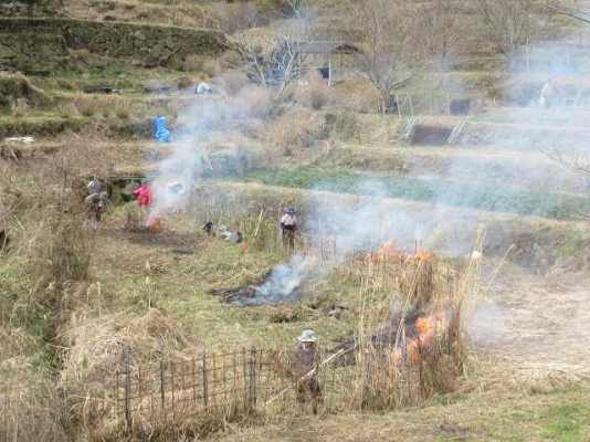 春の棚田を迎える下準備 (野焼きと川沿いの草刈り・清掃)