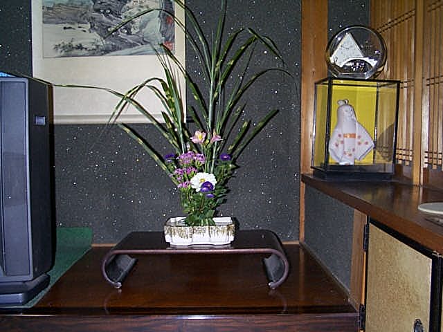 Ikebana is the art of Japanese flower arranging and has been practiced in Japan for 100 years. Unlike western style flower arranging, the main consideration of ikebana is to use as few stems and leaves as possible, so that the beauty of each flower is highlighted in the space around it. There should be harmony between the flower, containers and the surroundings, and to learn the techniques for positioning and fastening the flowers correctly requires 3-5 years study.