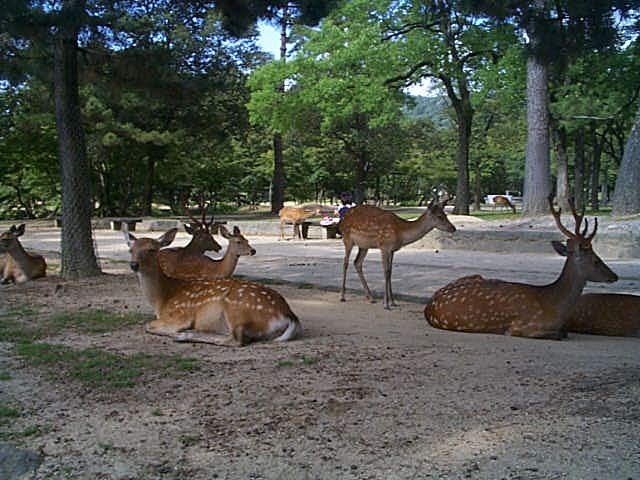 Nara Park is a natural woodland. It is covered with green grass and pine trees which are 1,000 years old. It covers an area of 660 hectares. The scenery is very beautiful. About 1,200 tame deer roam around. Nara is very famous for its deer. Because this region flourished in the eighth century as Japan's capital, there are many temples, shrines and other precious cultural properties. For example, Todaiji Temple, Kasuga Grand Shrine and Kohfukuji Temple are very famous and are World Cultural Heritage Sites. Todaiji houses the biggest Buddha statue in the world. Many tourists visit Nara Park to see them.
