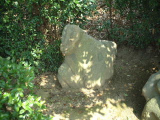 国営歴史公園祝戸地区の入り口にあります 長さ1.25m このような石は村内に点在しており 飛鳥坐神社には沢山あります 私の家の庭にも小さいですがあります |