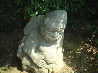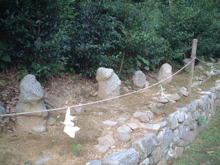 高さ1mの4体の猿石、吉備姫王の墓前にある石造物です。 上右が「女」、下左が「山王権現」、下左手前が「僧」で奥が「男」と呼ぶ 欽明天皇陵の側にあります |