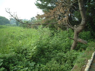 川原寺(写真左)の側飛鳥川沿いの松の側に(写真右)発見されました今は埋め戻され姿を見る事は出来ません 寺の中には住職の娘さんがやっている懐石料理があります |