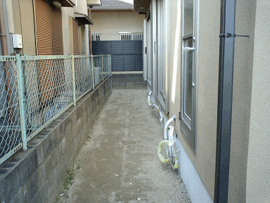 北面の境界。人一人歩ける程度。でも、敷地は側溝も入っているのです。