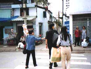 氏の家に向うメンバー、三木理恵、木場大輔、そしてホーチミン大学の講師で、コーディネーターを勤めるしのみどり氏。
