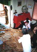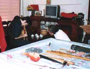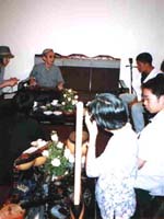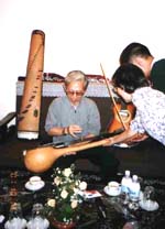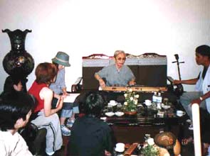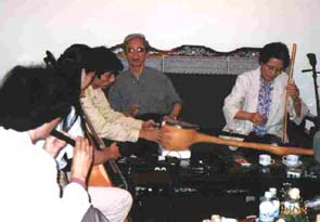 2階のダングエッ(月琴)、特製ギター、スティールギター、ダンチャイン(十六弦琴)などを演奏してくれるというので、誘いに甘んじて階上へ移動する。ここで、様々な民謡をじかに聞くことが出来た。