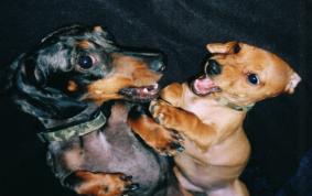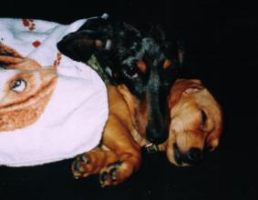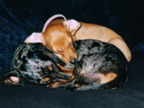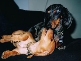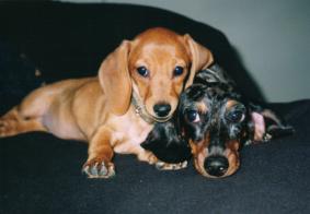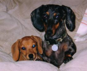 Momoは2ヵ月半の’02.8.10 T家に来た毛色のちょっと変わったダックスです。1年足らず1匹で寂しかったけれど ’03.7.15アイアイという5月15日生まれの妹が出来 2匹で大暴れの毎日だそうです。