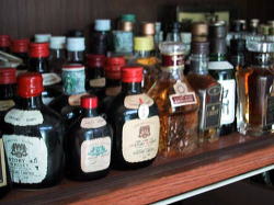 | ABOUT THIS GALLERY The collection includes many kinds of brandy, whisky, liqueur and figure bottles. The number of bottles were over twenty thousand, he said. He was very proud of it, and it was also his best hobby to take care of them after his retirement. He had many buisiness trips all over the world (I guess that he started the collection at one of those trips ). He also had many foreign friends through collecting and exchanging bottles. I found some pictures of him and foreign friends taken in their homes. His most favorite bottles were cute and interesting bottles. He put them on the shelves in the living room to show them up. he had wanted to collect as many rare bottles of various countries as possible. As he told nobody about his collection in details, there is only little information left about it. I got more information by reading the labels of the bottles. Therefore explanations about the bottles are very limited. Each assortment mainly depends on what my grandfather made. In this gallery, only figure bottles from his collection are featured. Approximately three thousand bottles are shown. I took a good glance of them through the process of making the site, and enchanted by their cute and interesting shapes. I hope many people will also enjoy their world wide charms. Please have a good time looking through this gallery. Webmaster Hiina |