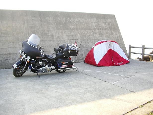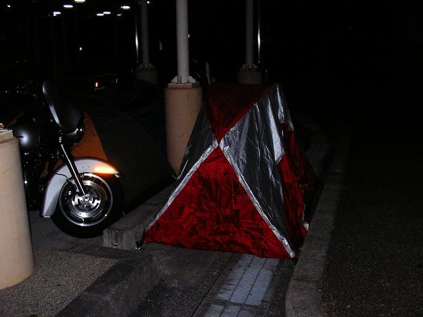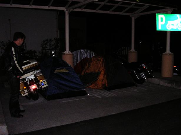 ここで仮眠をとる予定だが、バイク置場に埼玉ナンバーのウルトラとストグラがあり、テントを張っていた。