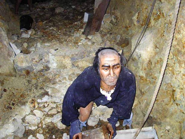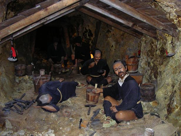 江戸コースでは電動ロボットが当時の採掘方法を再現している。