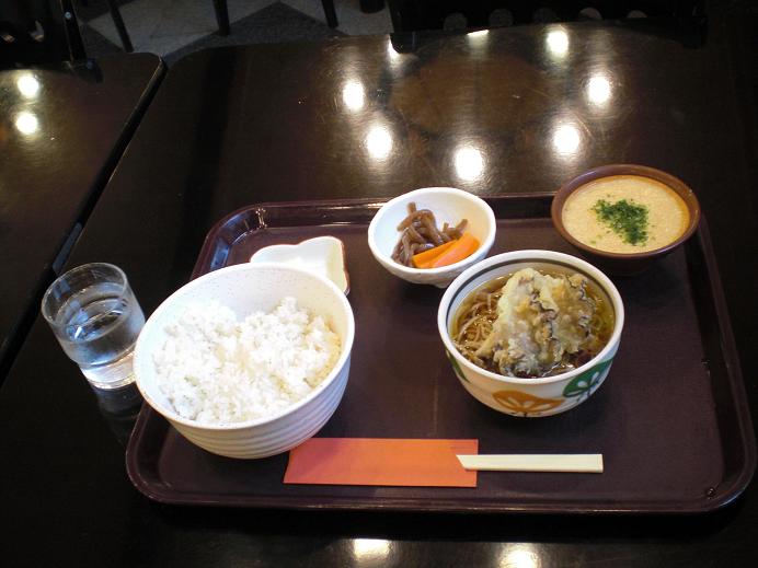 昼食にしよう、信州そばを食べたいので、「麦とろ御膳」1200円を食べた。