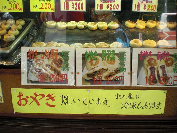 信州名物の「おやき」を1個買った(野沢菜200円)。
