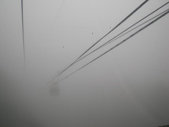 霧がヒドくて視界が20mくらいなので、ゴンドラから見る景色はサイコーではなく、サイテーだった。