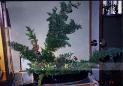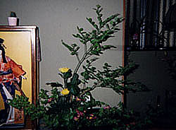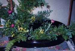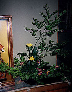 花材:薩摩杉、菊、ソリダスター、玉しだ
