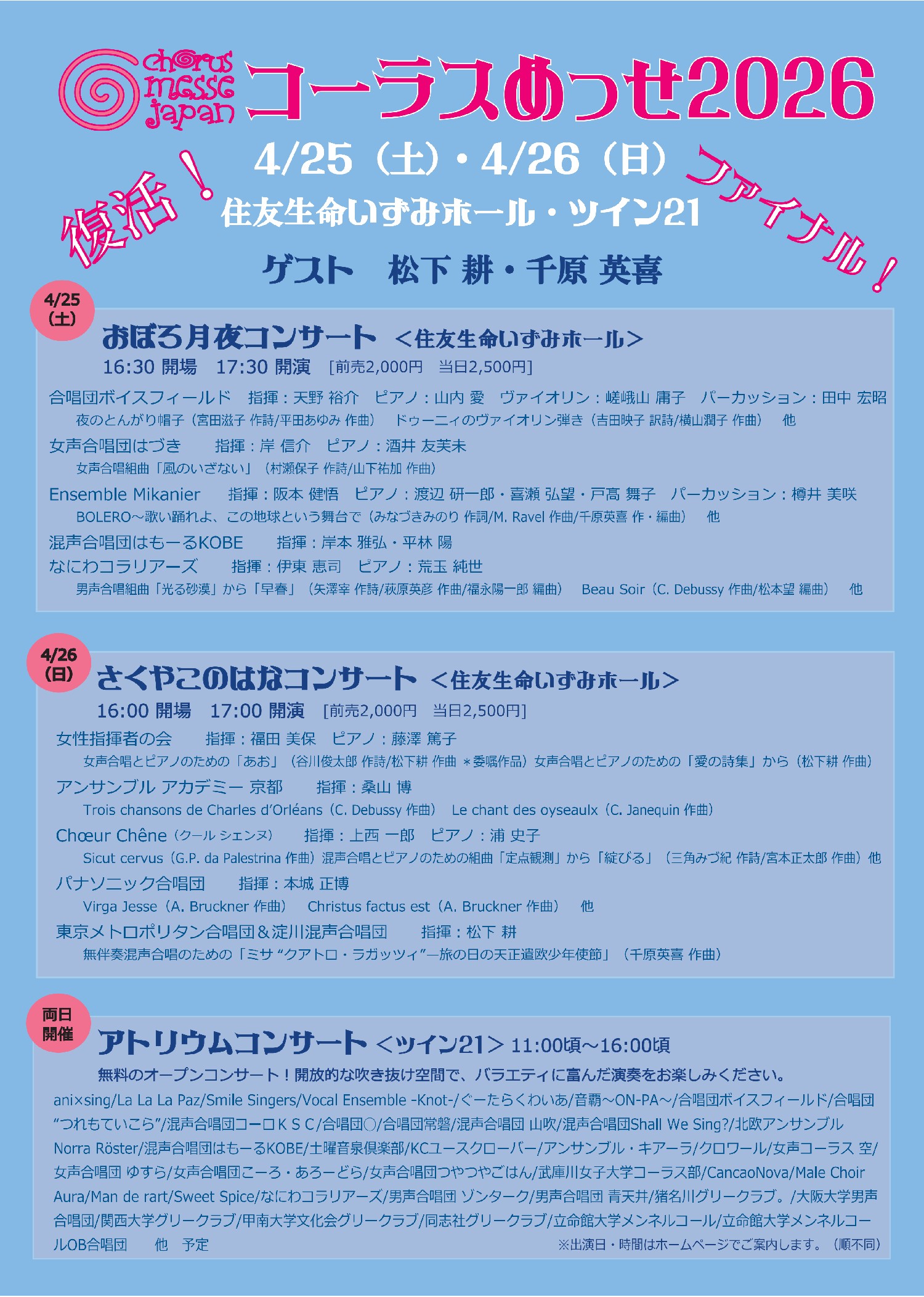 男声合唱団 【ゾンターク】 のこれからの演奏会